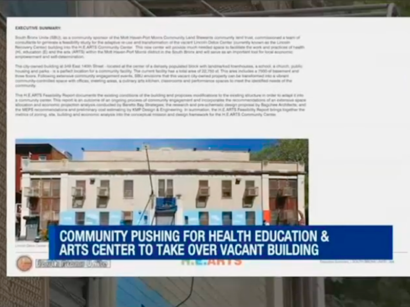 One organization is pushing for a vacant building in Mott Haven to be turned into a place for health, education and the arts. Parents in the neighborhood say a community center would be life-changing. The 23,000-square-foot building has been vacant for nearly a decade.